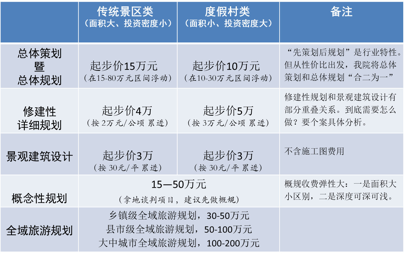 首先必須說明,旅游規(guī)劃收費并無所謂的“標(biāo)準(zhǔn)價格”,但很多客戶還是表示希望“知根知底”,所以至道規(guī)劃院就結(jié)合多年經(jīng)驗及行業(yè)...